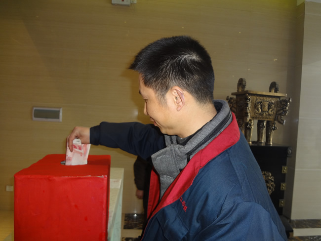 3月12日的中午,在公司領(lǐng)導(dǎo)的關(guān)心和倡議下,向全體員工發(fā)起了為小張(化名)同志獻(xiàn)愛(ài)心捐款的倡議。 小張是本公司生產(chǎn)部員工,因小孩突發(fā)疾病而入院,昂貴的手術(shù)費(fèi)和醫(yī)藥費(fèi)對(duì)本來(lái)就不富裕的一家無(wú)疑是雪上加霜。得知這一情況后,公司高層管理立即發(fā)出獻(xiàn)愛(ài)心